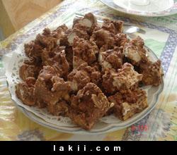 ثم يقطع الى مربعات و يترك في الثلاجة لحين التقديم