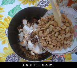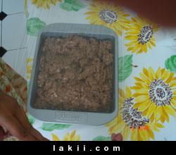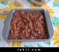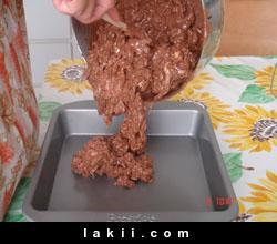 ثم نأخذ بالملعقه الخليط و نضعه في صينية مدهونه ثم ندخله الثلاجة بعد تغطيته لمدة 30 دقيقة او الى ان يتماسك