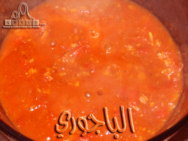 ثم نضيف ملعقه صلصه الطماطم وربع كوب ماء