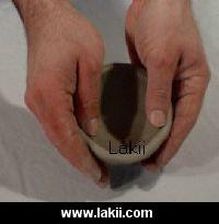 طبعاً كنت أضع قطعة الصلصال على الطاولة الدائرية وألف الطاولة وأستخدم الماء لتسهيل تشكيل الإناء.