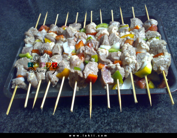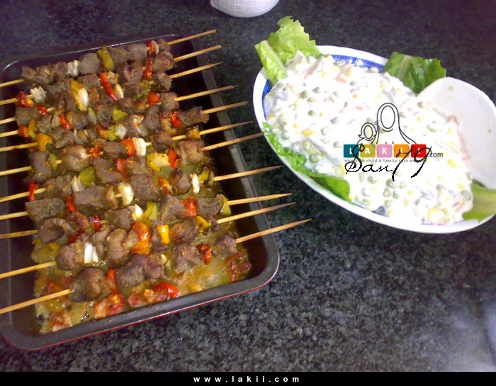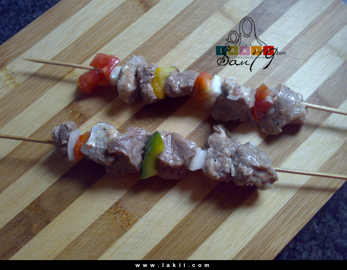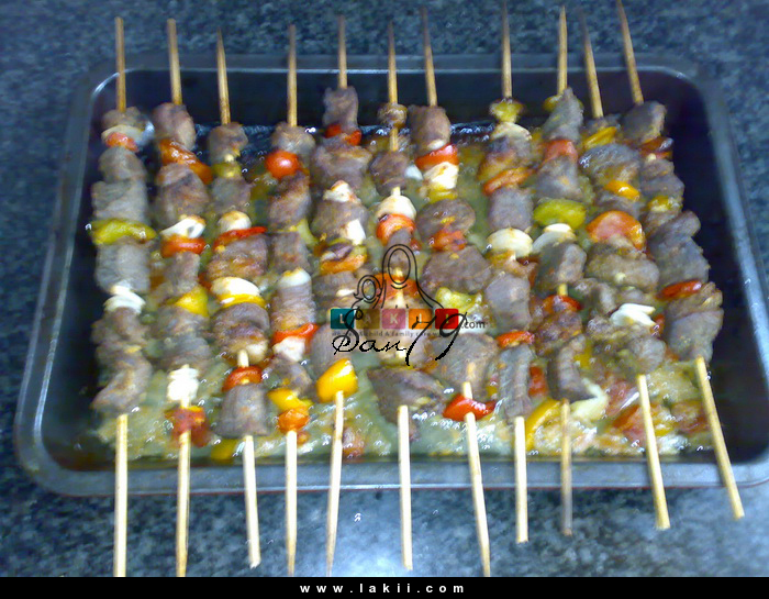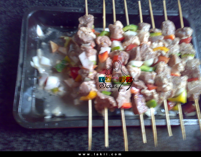 طبعا بتصفي قطع اللحمه بسياخ الشواء والتزين حسب الرغبه